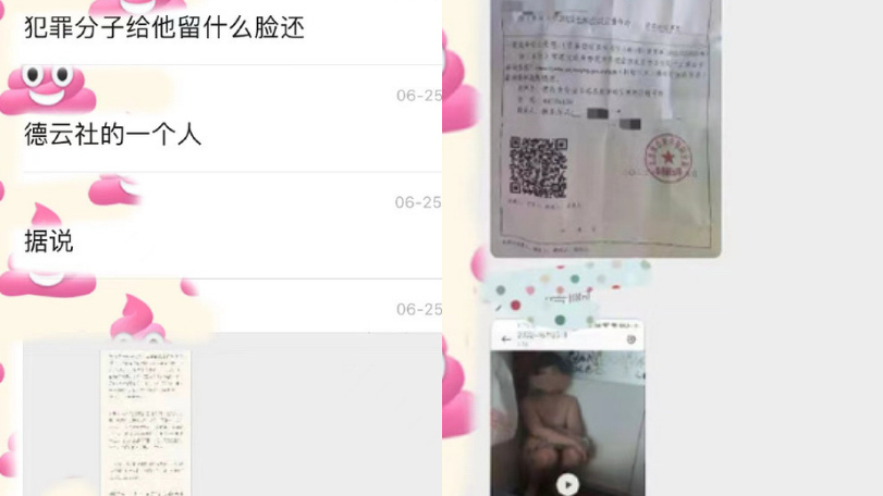 ▲女子和友人對話與報案記錄,以及她錄下的裸體陳霄華。陳霄華