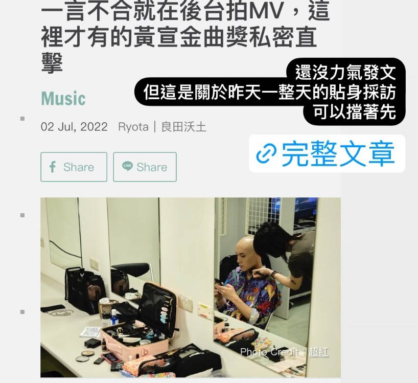 黃宣同時還發出另一則限動,寫著「一言不合就在後台拍MV,這裡才有的黃宣金曲獎私密直擊」,一段文章形容他是「人來瘋,彷彿有用不完的精力」,真的是形容得太好了!許多之前對黃宣不熟的觀眾,也在看完他的紅毯主持後,紛紛被圈粉了!