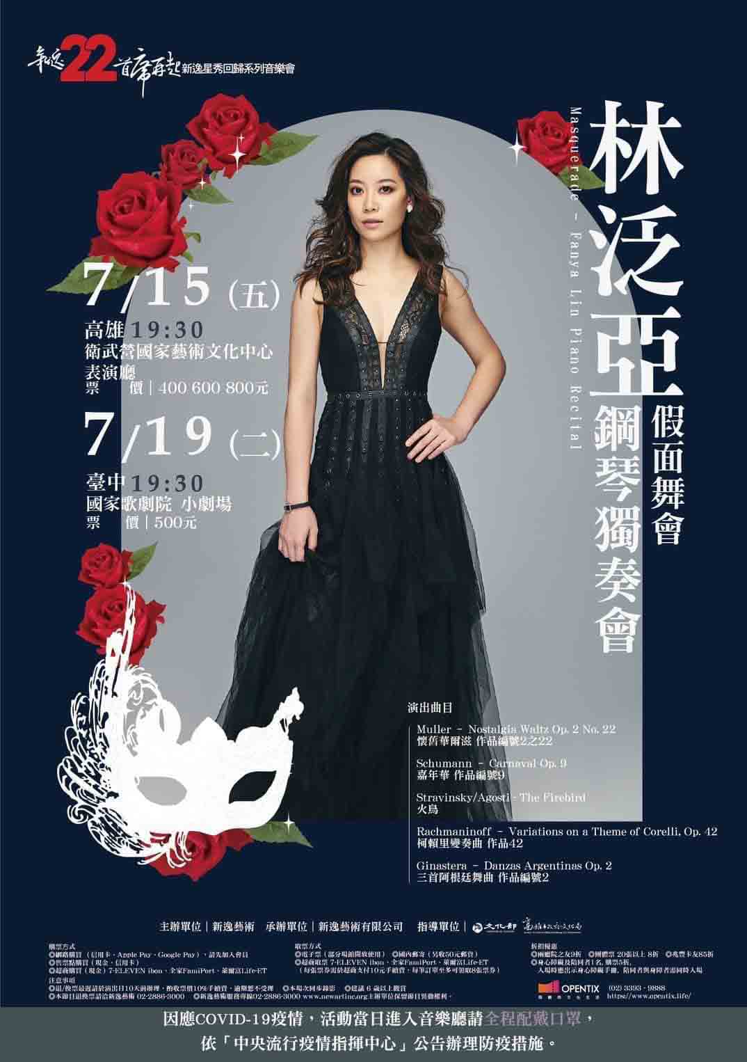 旅美鋼琴家林泛亞,她的琴藝曾被外媒形容是「迷惑眾生的演出」,這次由北到南共舉辦3場《假面舞會》鋼琴獨奏會、2場室內樂、協奏曲演出。《假面舞會》曲目是一系列由舞蹈啟發的鋼琴作品,讓聽眾浸淫於舞曲生命的情懷中。