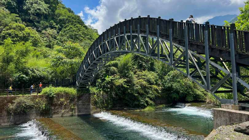 ▲走上最美觀景拱橋可以俯瞰清澈見底的大羅蘭溪與山林景緻。