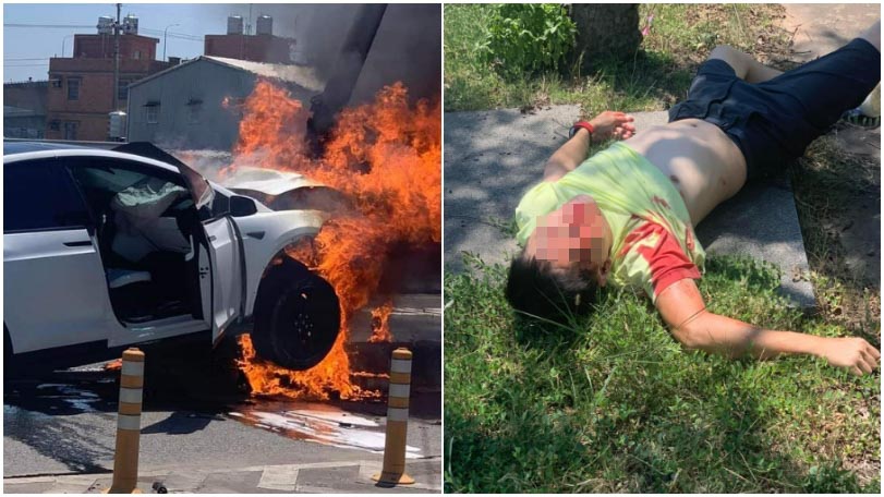 今日(22)上午藝人林志穎帶著6歲兒子開著一輛白色特斯拉轎車出門,在桃園市中正北路自撞橋墩,引發猛烈火燒車。現場剛好有一個工地,工人們馬上與路過民眾一起把林志穎父子拖出來,現場照片曝光,林志穎的臉部腫到幾乎認不出來,已送往林口長庚醫院治療。