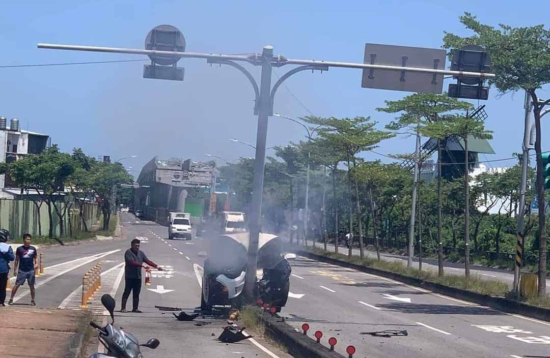 據瞭解,林志穎開車自撞橋墩、路標指示桿;熱心民眾表示,協助林志穎脫困時,車子內部還不斷傳來恐怖的「碰!碰!」聲響,5秒後就開始火燒車。