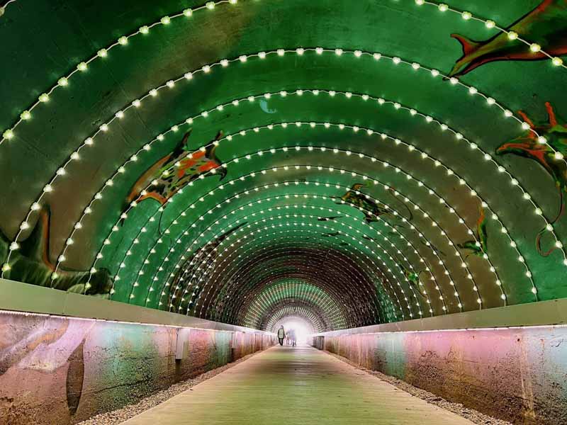 旗津變得更浪漫好玩!繼夢幻的「旗津版」藍眼淚後,高市府觀光局再次打造沉浸式體驗空間,將旗津星空隧道幻化成繽紛色彩的光廊,彷彿進入另一奇幻世界,如藍色多瑙河、海底極光、旗津趣及螢火蟲世界等光影動畫。