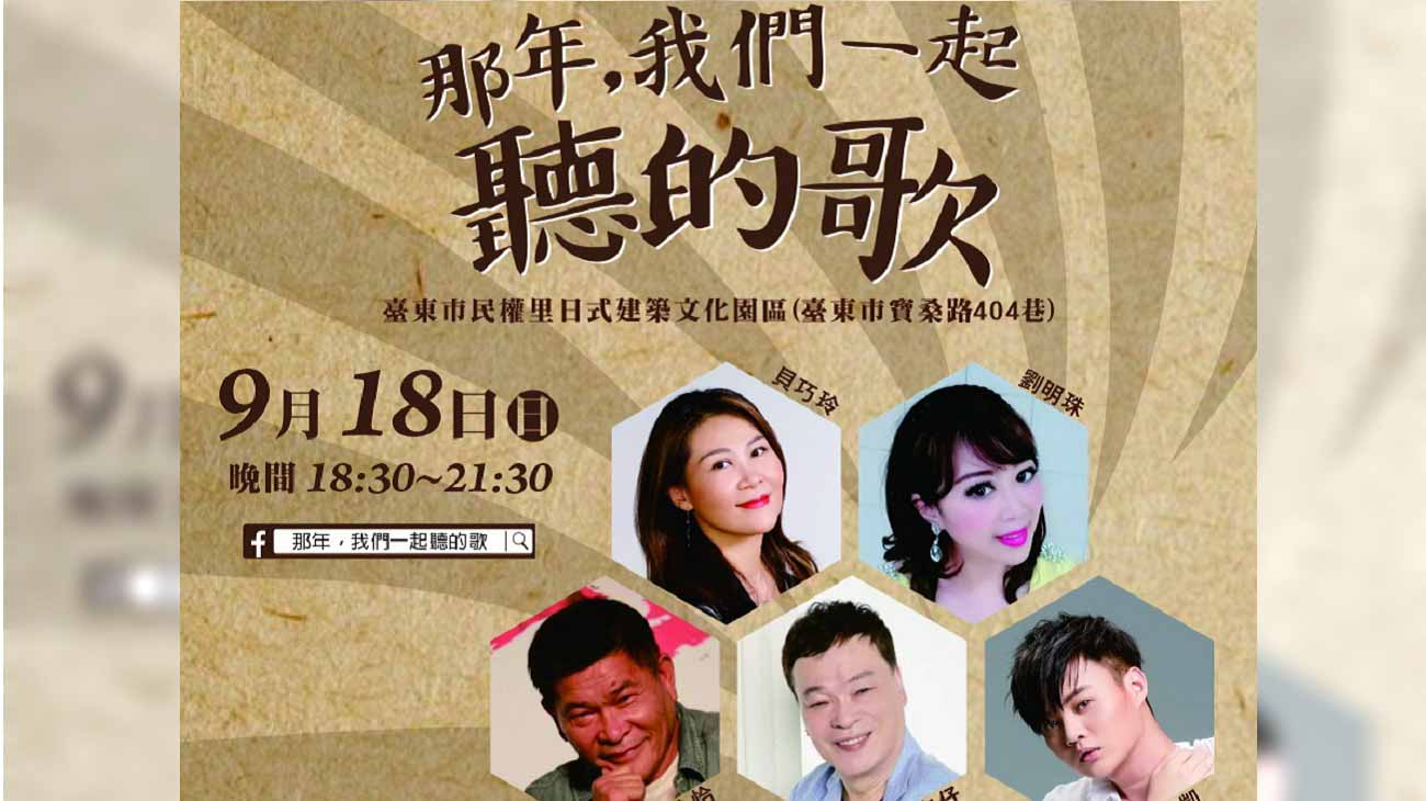 最受台東樂齡朋友喜愛的「那年,我們一起聽的歌」,9月18日下午6點半將迎來重量級綜藝大哥澎恰恰,現身老式經典的日式建築文化園區,與《命運的吉他》阿吉仔、金曲獎最佳台語男歌手許富凱及劉明珠、貝巧玲,一起聽著故事唱著老歌,歡迎大家一起相約來聽歌,並請配合實聯制、量體溫及全程須配戴口罩及相關防疫措施。