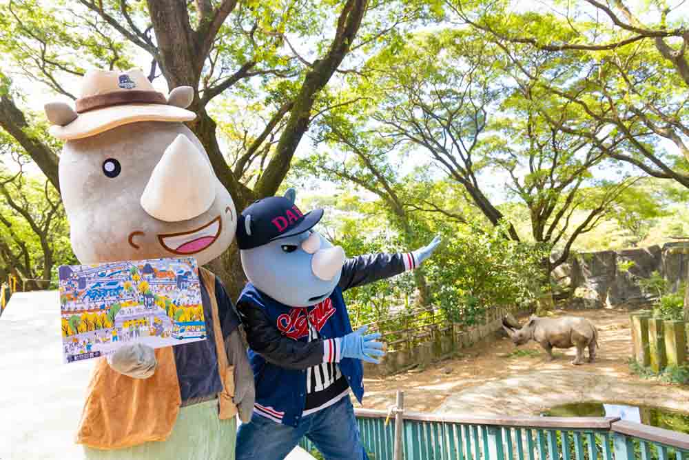 壽山動物園目前有2隻白犀牛,分別是來自臺北市立動物園的雄性「犀奇」與園區自然繁育的雌性「寶寶」;壽Q家族成員「犀奇哥」與義大遊樂世界吉祥物「大義」心有靈犀,相約到壽山動物園探訪牠們的動物朋友–犀奇與寶寶,希望牠們平安健康。