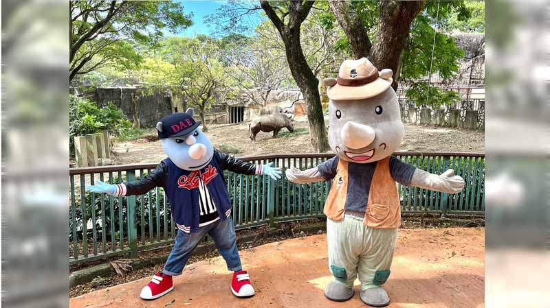 ▲壽Q家族「犀奇哥」與義大遊樂世界吉祥物「大義」攜手推廣世界犀牛日活動。