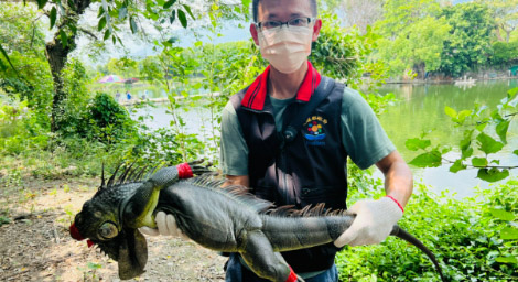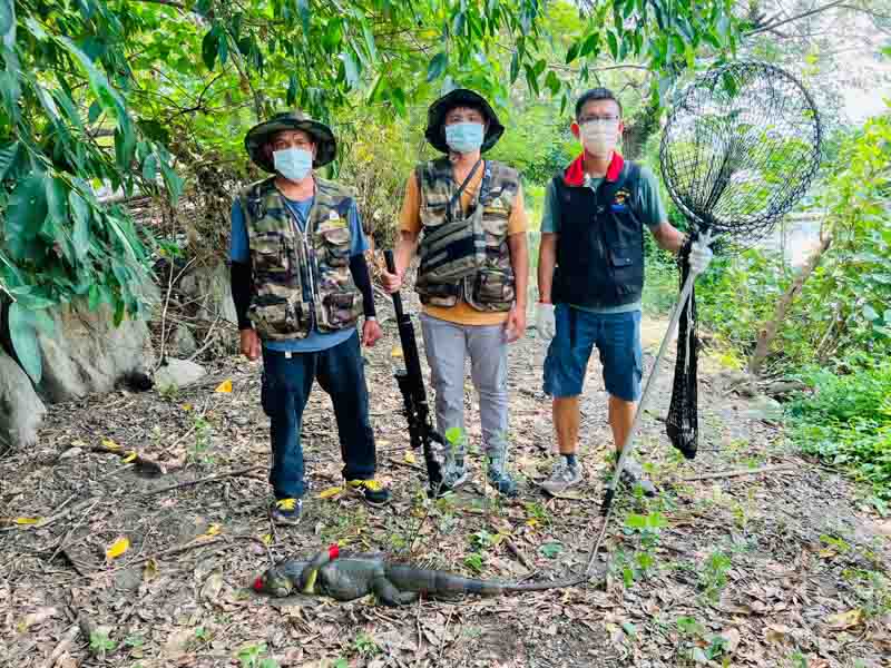 花蓮縣政府日前接獲民眾通報發現綠鬣蜥,農業處會同花蓮林區管理處及洄瀾風生態有限公司人員,於美崙溪旁一處養殖魚塭發現並成功移除綠鬣蜥雄性成體一隻,貫徹縣府致力移除並控制外來入侵種的施政方針。縣長徐榛蔚呼籲民眾,若有發現外來入侵物種危害,請通報縣府由專人前往處理,切勿自行捕捉移除,以免遭受動物咬傷。