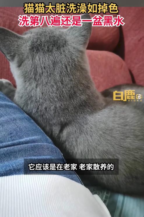 洗第一遍時,洗澡水全是黑色的,讓店員相當訝異,於是只好洗第二遍,沒想到第二遍洗完,洗澡水還是黑色的!就這樣一遍一遍的洗下去,最後洗了八次,「黑貓」原本的毛色才顯露出來,店員這才發現這隻髒兮兮的小貓咪根本不是一隻黑貓,而是英國短毛藍貓。