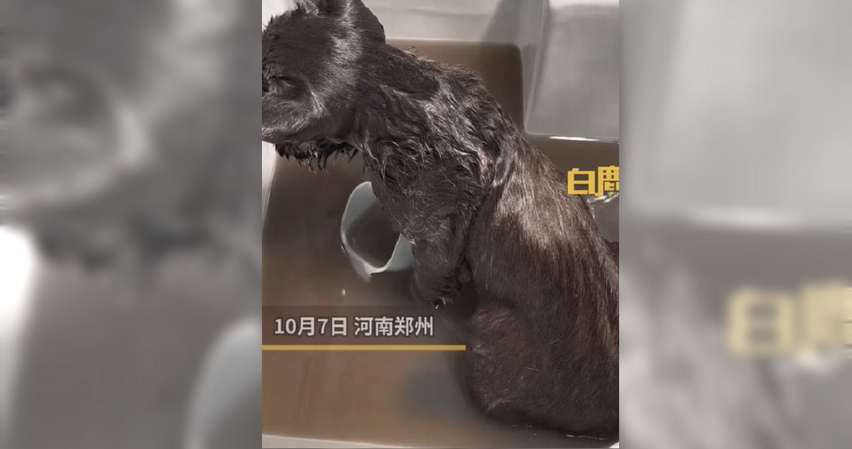 ▲黑貓洗澡水都是黑色的。(圖/微博)