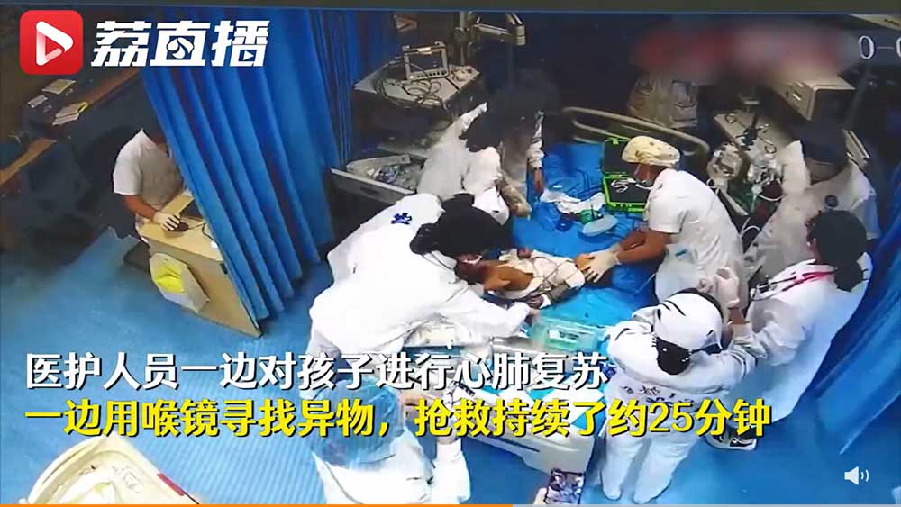 醫生表示,男嬰當時已經出現心跳下降、呼吸暫停的情況,而且就連皮膚都因為缺氧而開始轉為青紫色,只得馬上替男嬰做CPR,並利用喉鏡找出香蕉。就在持續急救25分鐘後,香蕉終於被取出,男嬰的心跳、呼吸也逐漸恢復穩定。