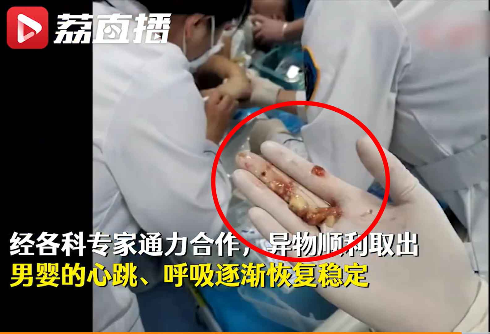 10月8日,中國四川省成都市這名嬰兒被家人送到醫院急診,護理師們立即衝上前並採用哈姆立克法急救,但因為香蕉太過軟爛、黏糊,根本無法用這個方法讓其排出體內。