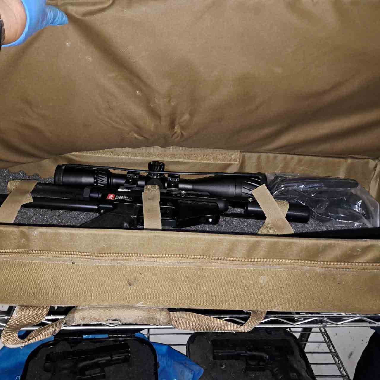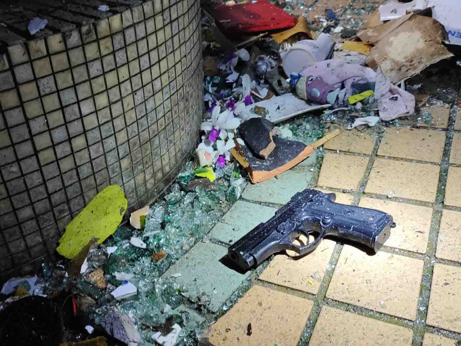 現場另外發現儲藏室內架子上有模擬槍2枝、空氣槍2枝,並於於室外花圃發現疑似改造槍1把等違禁物品,現場未查獲任何改造工具或爆裂物,但經查劉姓傷者曾有使用鞭炮、玩具槍等物品從事討債等行為,研判可能於該儲藏室內囤放鞭炮、煙霧彈、信號彈及模擬槍等危險物品。