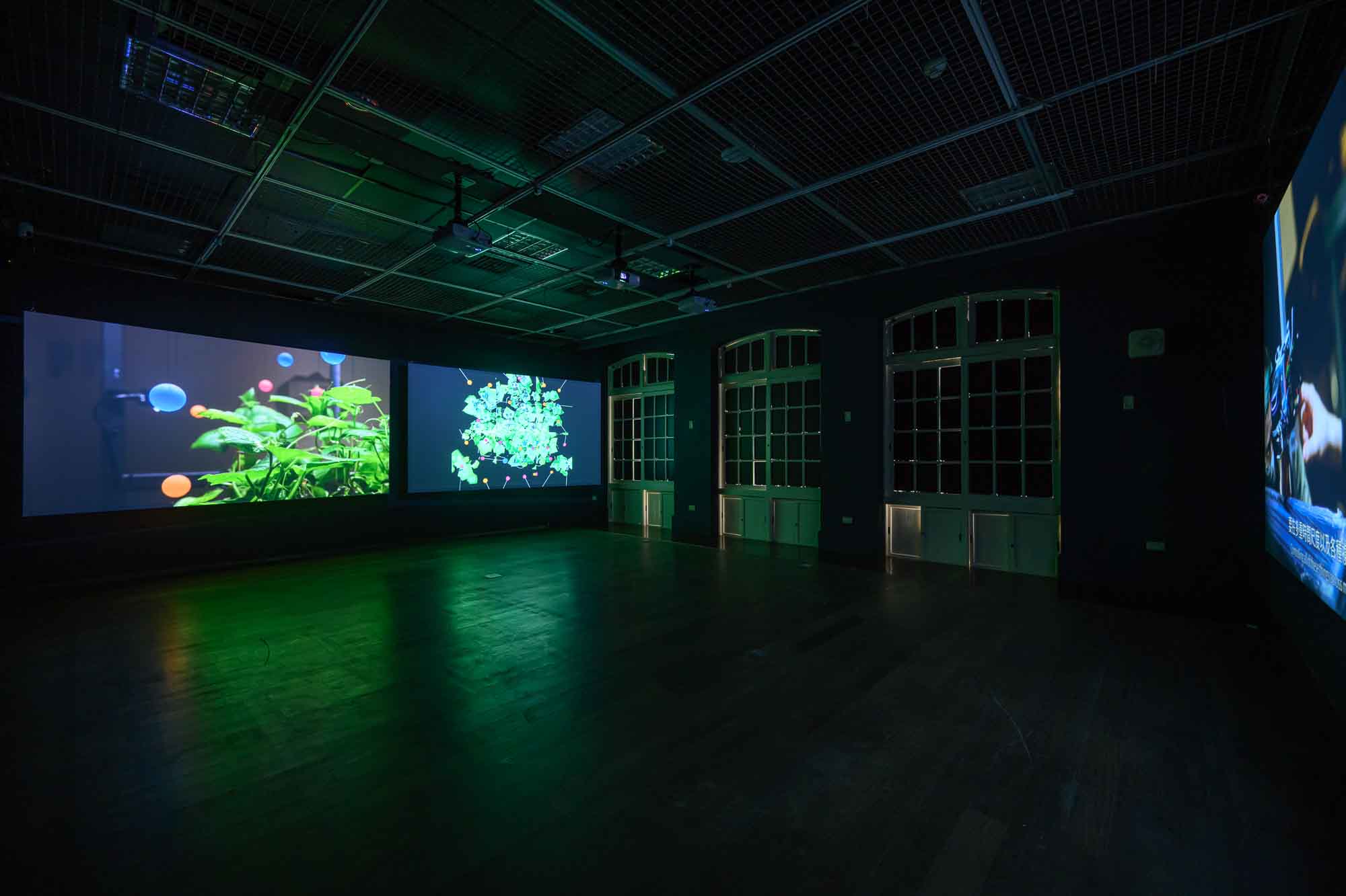 胥貝拉.佩區克(Špela Petrič)的作品《PL’AI》取自Plant、Play與AI三個單字的結合,探索小黃瓜植株生長過程中與人工智慧機器人間的交互作用,企圖探索非人類的生命本體與人工智慧間共同意識產生的可能性。動態自造實驗室《Project ZERO|首部曲》的VR作品,從已故的傳奇舞者蕭賀文出發,嘗試以動作捕捉、姿態辨別、人工智慧、演算法等技術,生成出新的意識與思考,探究生命的消亡與科技之間的關係。lololol(林亭君&張欣)《晶舟靈雨》從當下幾乎所有科技物的必備元件—半導體及其生產鏈出發,運用蒙太奇式的影像結合錄像聲音裝置,敘述與想像科技物與現代人生活間流轉的能量,以及全球/地方半導體產業的連帶關係