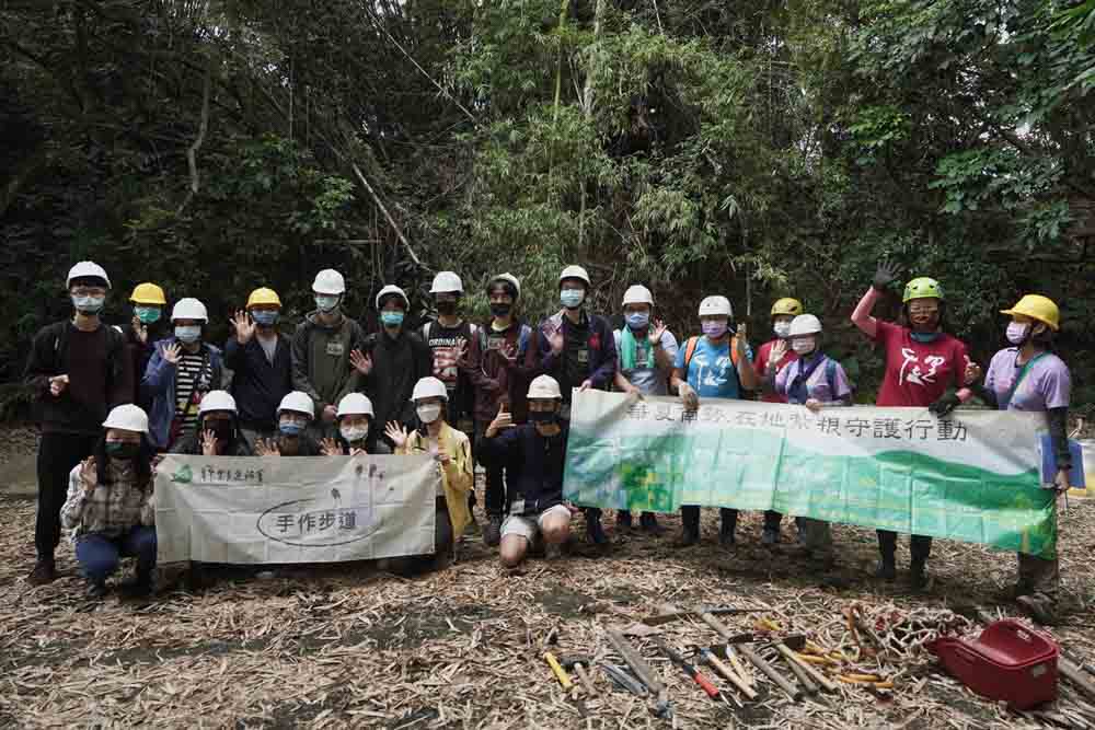 ▲觀旅局攜手華夏科技大學及千里步道協會和山徑志工於微笑山線外挖子山舉辦手作步道活。