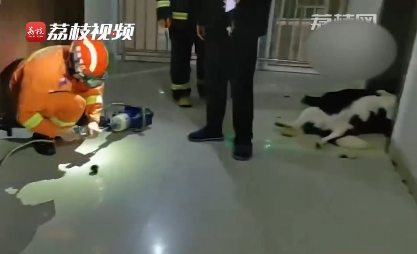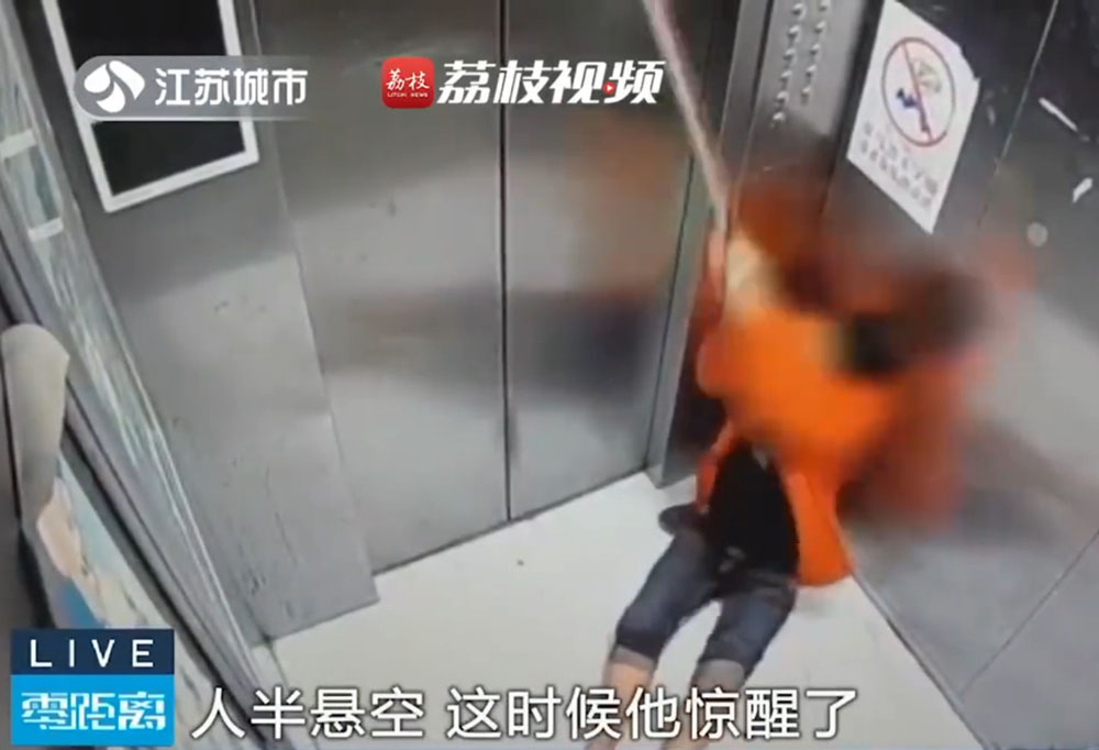 綜合陸媒報導,當天男子牽兩隻狗狗進入電梯後,自己因為酒醉而靠著電梯內牆坐了下來、呼呼大睡,完全沒注意到電梯門打開時,狗狗自行出了電梯;隨後電梯門關上,樓下又有人按電梯,導致電梯下行。