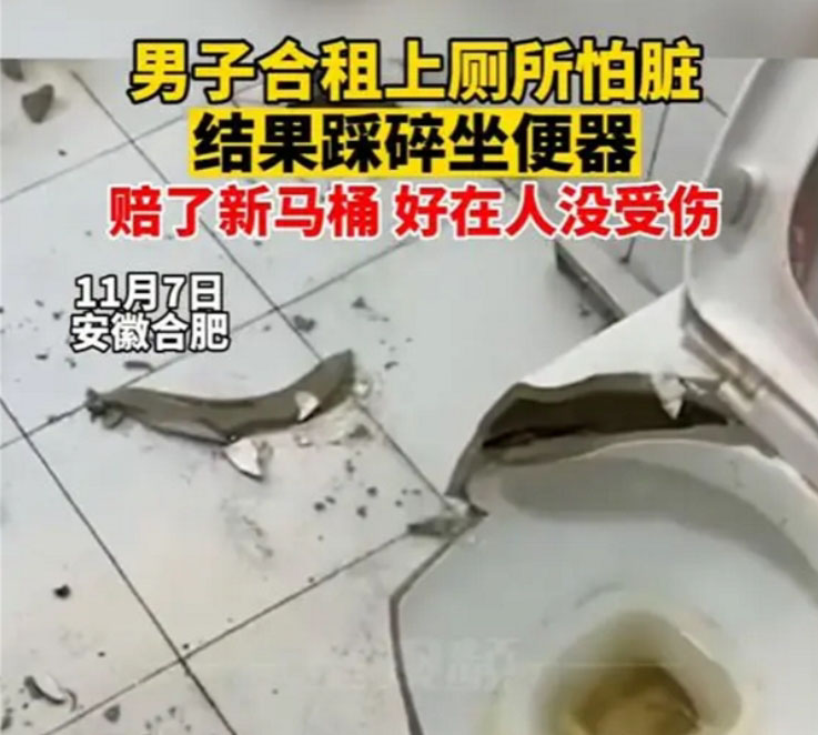 綜合陸媒報導,由於許多大陸民眾認為公廁馬桶不夠乾淨,所以如廁時選擇踩在馬桶圈上。11月7日,安徽省一名宋姓男子就蹲踩在合租房的公用廁所馬桶上,結果馬桶整個傾斜倒榻還碎掉,好在他當時才剛踩一隻腳上去,所以沒有受傷;自此以後他決定使用拋棄式的馬桶墊。