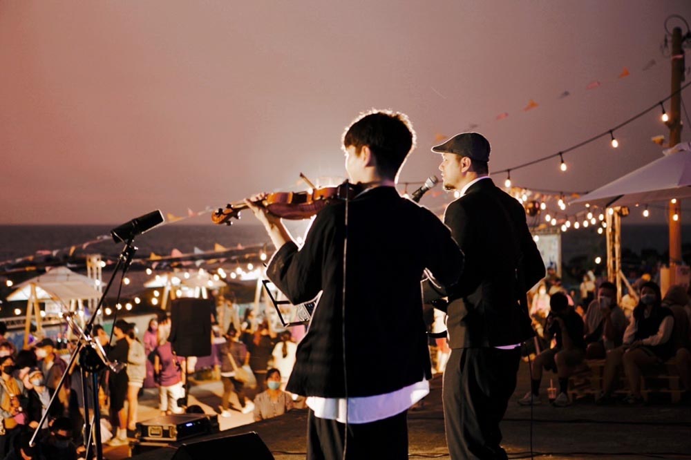 ▲現場有小提琴演奏及動人歌曲伴隨夕陽浪漫海景,被民眾大讚台版海岸村恰恰恰。