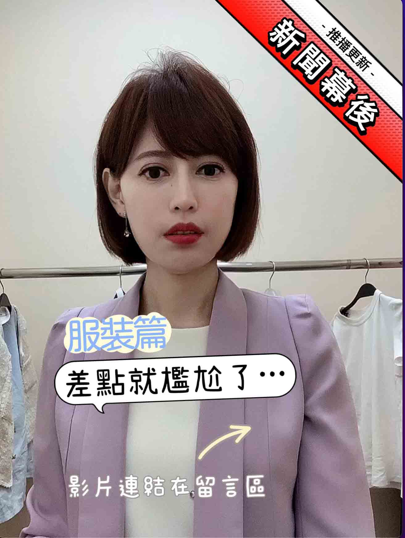 古彩彥說,當天穿的紫色外套質料較薄,內裡搭襯的白色背心上頭又有假鑽,而假鑽的位置相當尷尬。原本她換完衣服準備要上主播台,好在服裝師突然瞄到她因為假鑽而造成「激凸」,趕緊用透氣膠帶一層一層的貼住假鑽,足足貼了5層才解決這個問題。