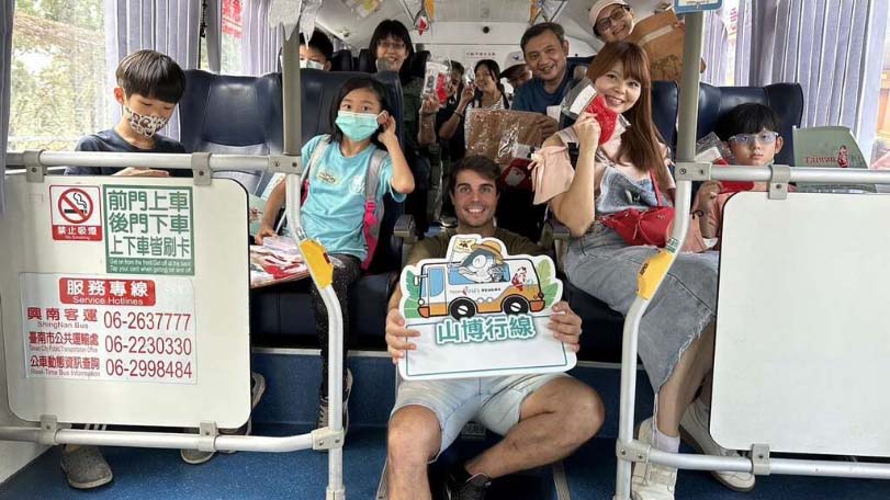 說到台灣好行山博行線想到的就是博物館!但是你知道其實現在山博行線還有新的玩法唷!「魚頭君帶你玩台南 台灣好行Let’s go」台灣好行主題示範遊程,今(4日)邀請到網路實境節目-老外瘋人院成員之一,並且在台南有著許多年輕人粉絲的西班牙型男佩德羅擔任領路名人,與15位親子家庭遊客同遊台灣好行山博行線,來趟親子共遊之旅!
