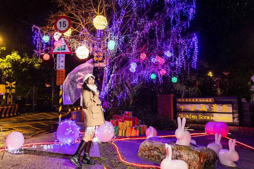 結合平溪天燈節推出期間限定的藝術新美學裝置,將於1月20日(五)春節連假首日登場亮相,於每晚17:00-22:00亮燈,展期至2月28日(二)止。三座裝置分別位於:菁桐電子天燈館前利用LED霓虹燈光呈現地方礦業文化、山城生態的「平溪意象」;平溪火車站平台則有「耀兔光廊」,使用象徵希望與溫暖的暖色燈光,結合兔子造型的金屬結構及彩色燈籠,打造星光閃耀的廊道;而位於十分風景區入口處的「希望之光」,將綠意盎然的樹木搖身一變成為點點星空下璀璨動人的許願樹,並使用一顆顆燈泡詮釋人們心中的願望。這三大裝置不只白天美麗好拍,晚上更是浪漫爆表,歡迎大家前來拍照、打卡,循著光的軌跡更認識平溪的小鎮風情。