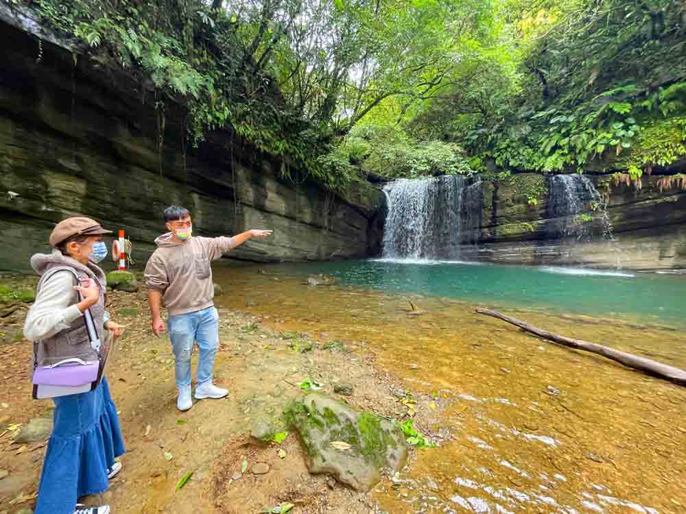 ▲十分體驗遊中走訪望古瀑布(部落客寶寶溫旅行親子生活提供)。