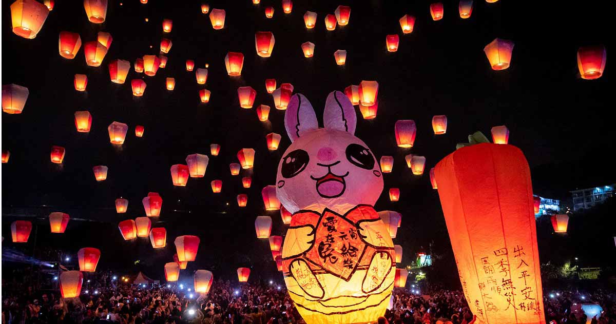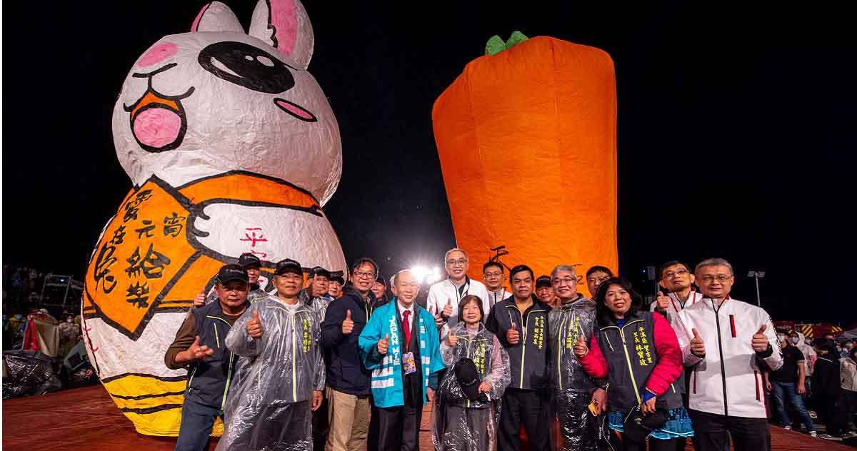 昨日除了是元宵佳節外,「2023新北市平溪天燈節」首場活動在新北市平溪十分廣場盛大舉行,迎來國內外遊客,在平安喜氣的元宵節,一同觀賞天燈華麗升空的絕美盛況。首場活動呼應今年為癸卯(兔)年,特別邀請知名畫家Rabbit with Mask面具兔及「天燈國寶」胡民樹老師共同製作「新北兔You」大型造型主燈,且首次製作2盞20呎超大型主燈,注入玉兔迎春新年氛圍,並與百盞齊飛的祈福天燈,飛得更高更遠,兔躍新程!