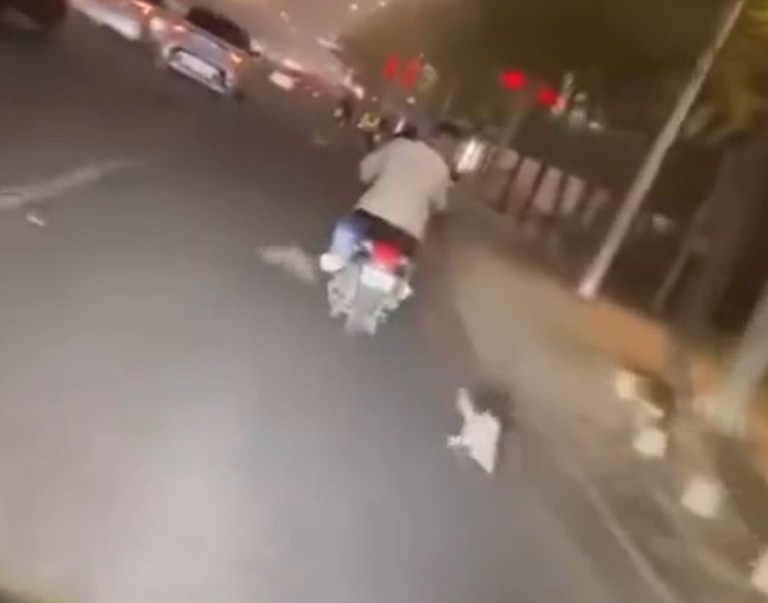 綜合陸媒表示,從影片中可以看到男子用一聊繩子綁住小貓咪的左前腳,繩子的另一端繫在電動機車的車尾,接著男子開始騎車,小貓咪努力的跟著跑,但男子越騎越快,小貓咪到最後四隻腳跟不上車速,只能被拖行,多名目擊者表示小貓咪活活被拖行致死。
