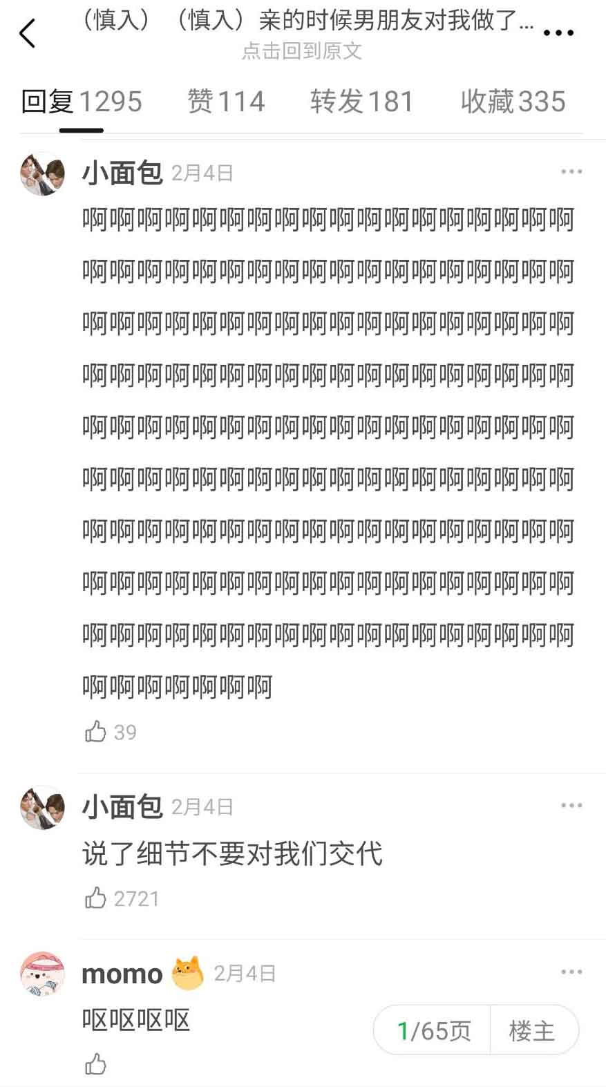 一名女子在網路上發文,標題和內容分別都只有短短的一句話,但卻有一千多位網友留言回覆,勸她早點和男友分手,而她真的因為這樣跟男友分手了。這篇文章的標題是「慎入慎入,親的時候男朋友對我做了噁心的事」,到底有多噁心呢?