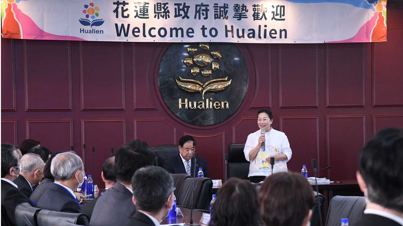 花蓮縣長徐榛蔚致詞提到,今天是春暖花開的好日子,花蓮在國門解封後迎來日本盛岡市的好朋友們,盛岡市與花蓮自2002年首次交流至今已有21年,我們共同建立深厚的情誼,而文化底蘊深厚的盛岡市一直是花蓮學習的榜樣,期盼我們在觀光、農業及文化等各方面持續深化交流。
