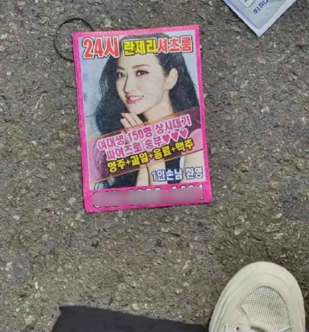 昨日(16)網路流傳數張照片,是中國一線女星景甜的肖像被印在小宣傳單上,而網友拍下宣傳單照片的地點是在韓國,宣傳單的內容還是情色廣告!這件事讓景甜的粉絲相當火大,景甜工作室也對此做出因應處理。