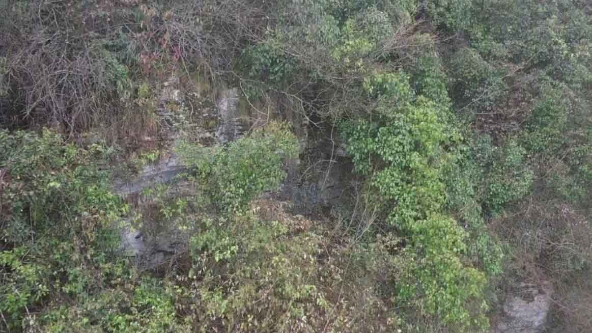 ▲空拍機拍到劉男藏身的山洞。(圖/微博)