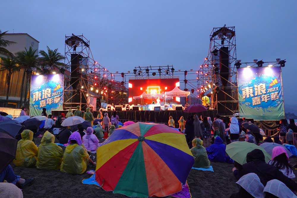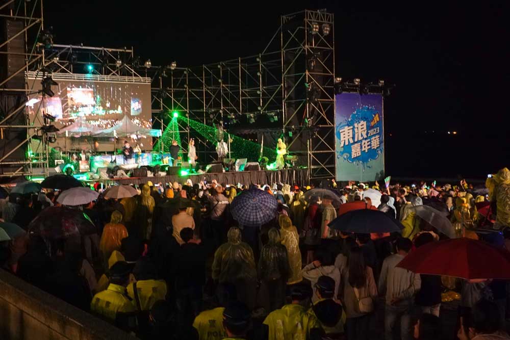 台東縣政府推出「2023東浪嘉年華feat.尬電」系列活動,今年首次加入「尬電」元素,昨(1)日起連續四天在杉原灣盛大開演,晚間則有連續四晚的沙灘音樂會,第一天由「玖壹壹」擔任壓軸,雖然遇到下雨攪局,但仍有不少民眾不畏風雨到現場朝聖,熱情地跟著音樂節奏搖擺,還有三天精彩節目,歡迎鄉親及遊客到場嗨起來,縣府再度呼籲「不開車、少騎車、搭接駁」多加利用。