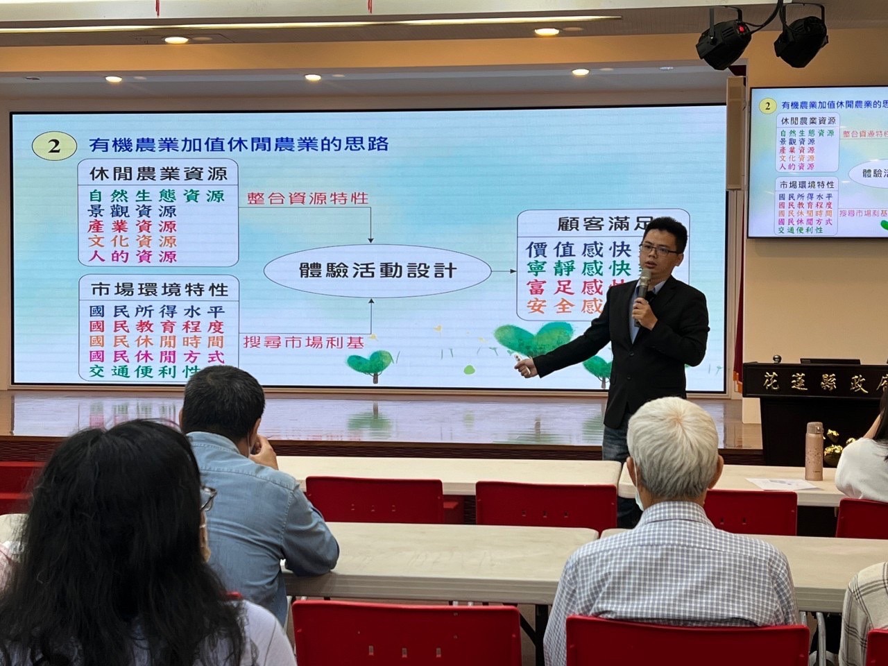 這個月的月旦講堂主題「從食安到食農教育:有機農業如何加值休閒農業」,花蓮縣政府邀請國立屏東科技大學的蕭志宇博士與我們分享,藉由體驗經濟之觀點設計體驗活動,吸引民眾參與農業生產過程,進而加深對土地及農業產品之連結,貫徹農場到盤子的理念,結合一級生產、二級加工及三級服務創造農業六級化。