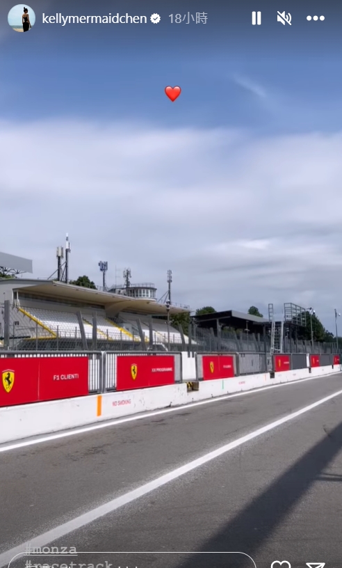 而陳若儀也在IG限時動態PO出賽車場180度環繞影片,還曬出一段車子開進賽道的影片,明顯可見賽道地面傾斜,陳若儀除了拍攝自己開心比「YA」的影子之外,還寫道「Monza舊賽道,沒想到會這麼斜,太酷了」、「要不要那麼斜?人都爬不太上去何,何況賽車。好佩服以前的賽車手」。