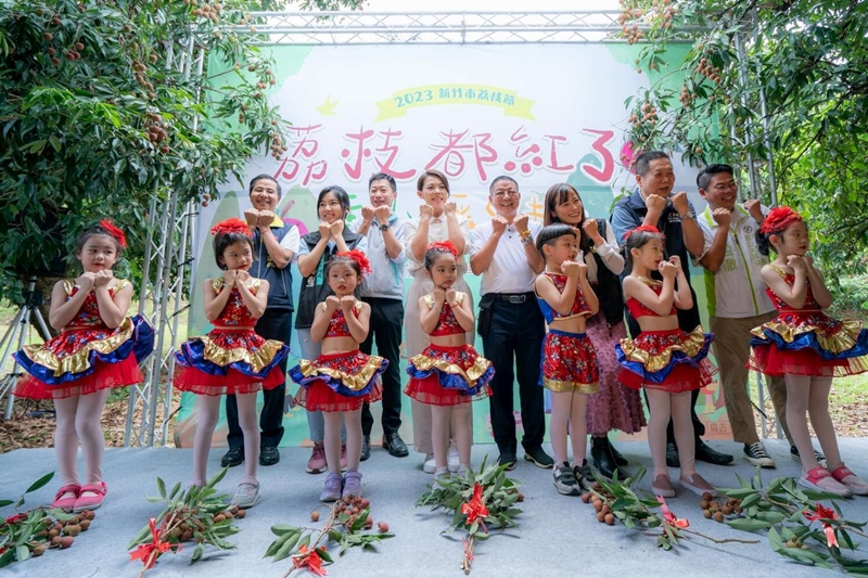 2023新竹市荔枝節「荔枝都紅了,香山採果趣」開幕記者會,農委會農糧署北區分署新竹辦事處主任石東儒、桃園區農業改良場秘書施錫彬、新竹市農會總幹事鍾祥銘、常務監事楊文德、新竹市荔枝產銷班班長王明源、蔡明風荔枝觀光果園園主蔡明風、市議員廖子齊、林盈徹、陳治雄、陳啓源、宋品瑩、李國璋、立法委員鄭正鈐副主任吳文雄及多位里長皆到場共襄盛舉。