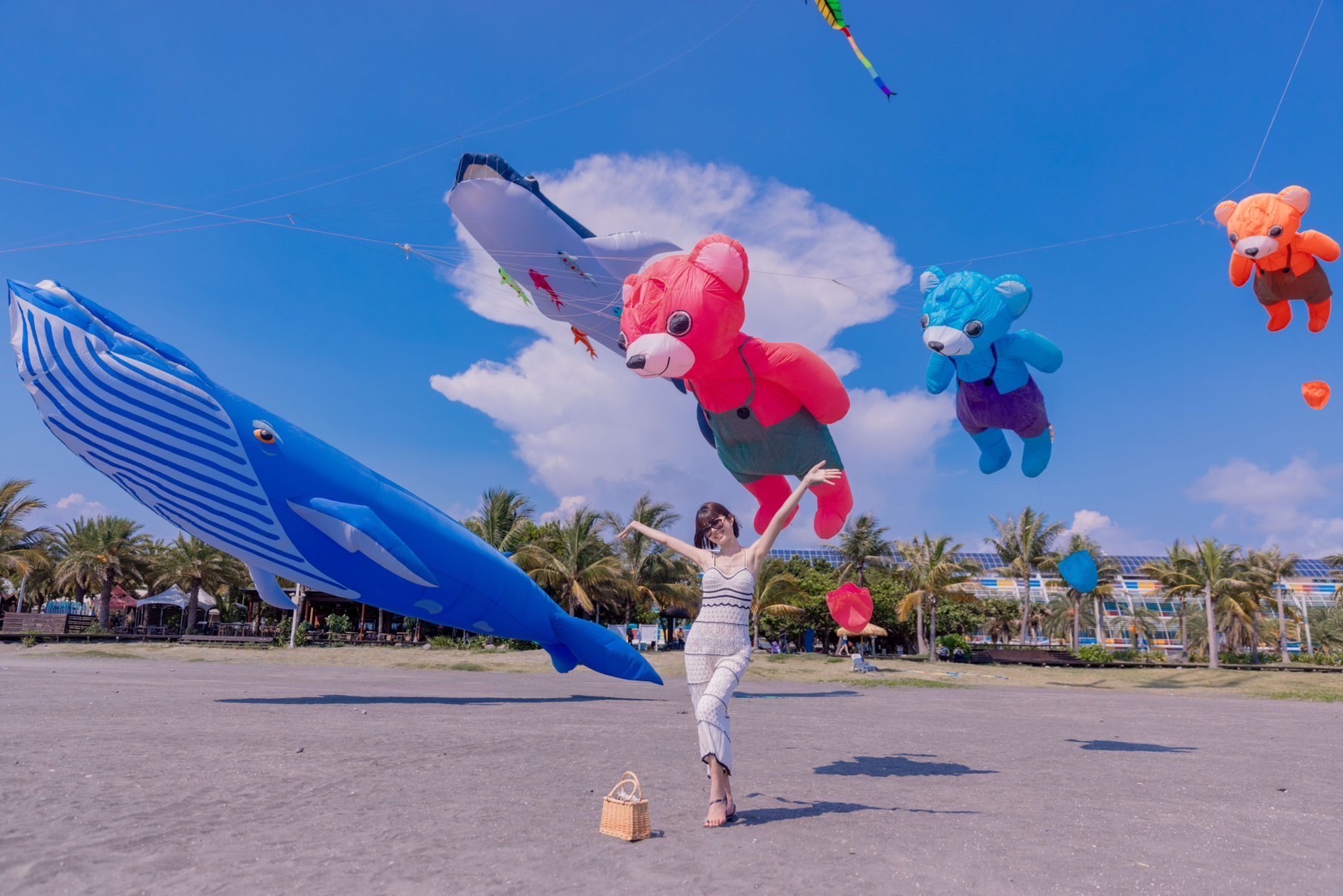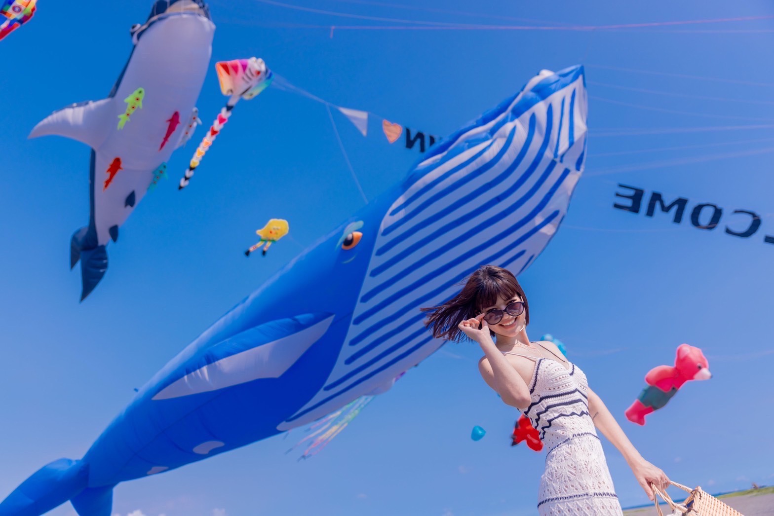 高閔琳說,南臺灣唯一依山傍海的旗津風箏節去年首次登場,7萬名民眾前來拍照打卡,深覺二天活動意猶未盡;為延續這股追「風」熱潮,今年特別將活動延長至6天擴大舉辦,三周活動將搭配不同主題風箏來呈現。這次風箏暖身試飛活動,有悠遊在深海裡的大鯨魚群、匠心獨製的客製化彩色吸盤大章魚、各種可愛動物,及為活動特製長達25公尺的「WELCOME TO CIJIN」大字串風箏,搭配知名新生代女演員「寶藏女孩」雷嘉汭(Regina)、熱愛旅遊及戶外活動的網路女神陳怡伶(Kimberlly)及甜姐兒黃靖雅(Lydia)齊聚旗津沙灘,為這場夏日盛事增添了一份亮麗的色彩,也預告即將登場的風箏節勢必讓人期待。
