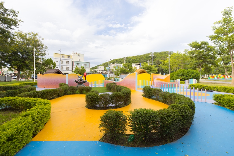 蓮池潭兒童公園為高雄首座共融式公園,除集結攀爬網、大沙坑、傳聲筒、鳥巢鞦韆及擁有南台灣最長30米溜索設施外,今年更以童話故事打造新亮點。高市府觀光局長高閔琳表示,營造特色景區與友善旅遊環境,一直是觀光局努力目標,今年於蓮池潭兒童公園,以三隻小豬故事為主題打造獨特景觀的迷宮廣場,啟用後不但成遊客最新打卡點,更為暑期親子同遊首選。