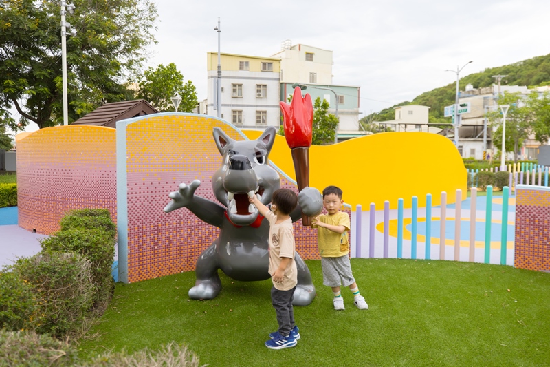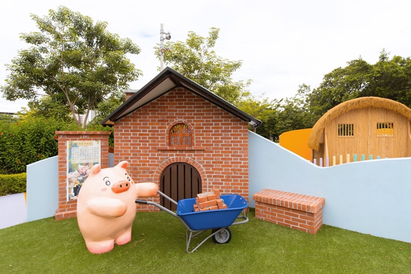 高閔琳說,迷宮廣場以大野狼作為入口意象,分別於廣場中打造三隻小豬的家―草屋、木屋和磚屋,讓遊客在迷宮探索,找到隱藏在迷宮中的小豬,同時在遊戲的過程中身歷其境融入童話故事場景,並透過綠化、童趣和多元色彩等元素交織,感受如沉浸故事內般獨特體驗,不僅吸引遊客注意,也讓家長和孩子們在這童話世界中共同探險,享受親子同樂的時光!