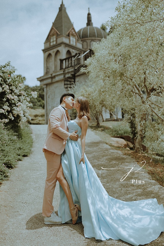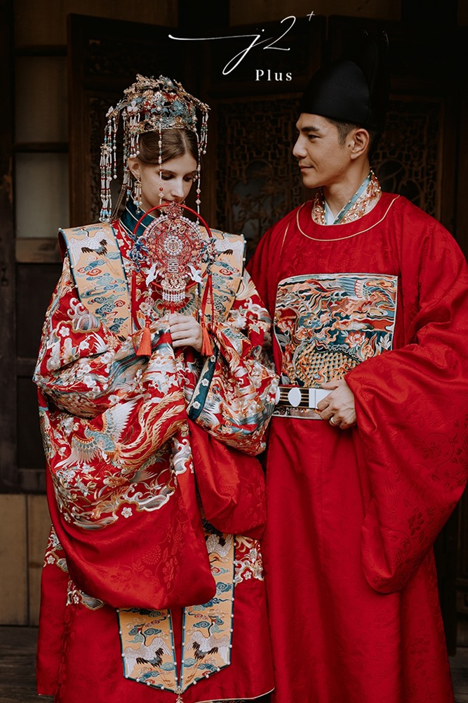 對於選擇古裝婚紗,佳娜坦言是受一部古裝劇的啟發,在疫情期間陪著祖雄看了一部古裝劇後,就一直幻想自己是古代公主,特別想拍攝中式的風格,所以這次也特別安排了古裝婚紗的拍攝,算是一種中西合併的感覺。