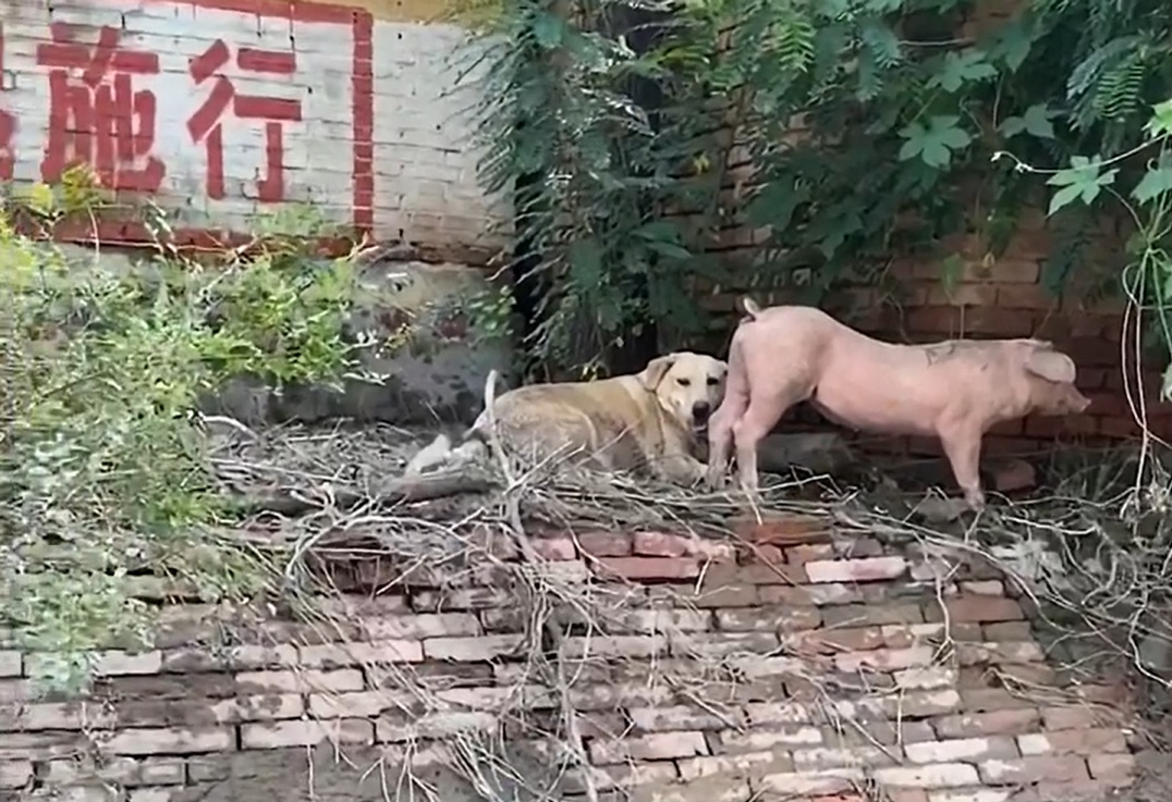 中國大陸先前受到杜蘇芮颱風影響,多處豪雨釀災,河北省廊坊一名女子日前回家,看到飼養的狗狗和小豬都平安無事,但肥嘟嘟的小豬卻餓出了S形身材,讓飼主看了好心酸。