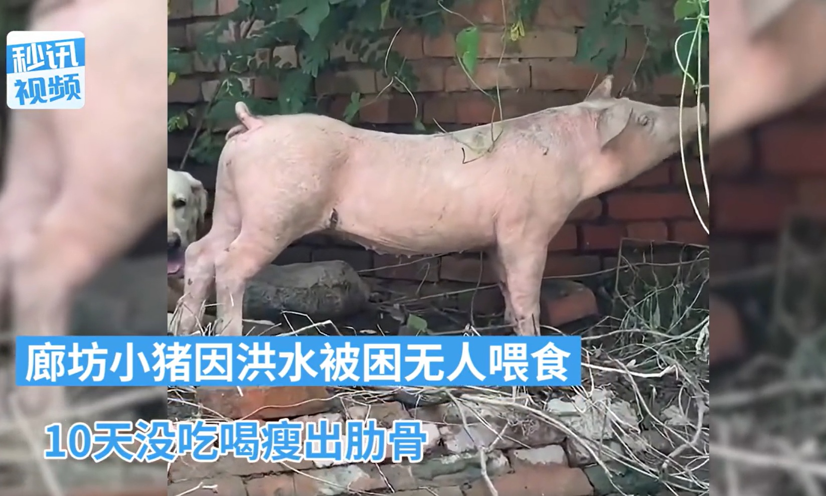 飼主說看到狗狗和小豬都平安無事覺得很欣慰,但小豬餓到肋骨都看到了,這一幕也讓她感到很心酸。