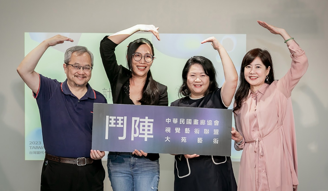 ▲左起:大苑藝術張學孔、視盟理事長何孟娟、畫協副理事長陳菁螢、畫協秘書長游文玫。(影像提供:視盟/攝影:潘怡安)