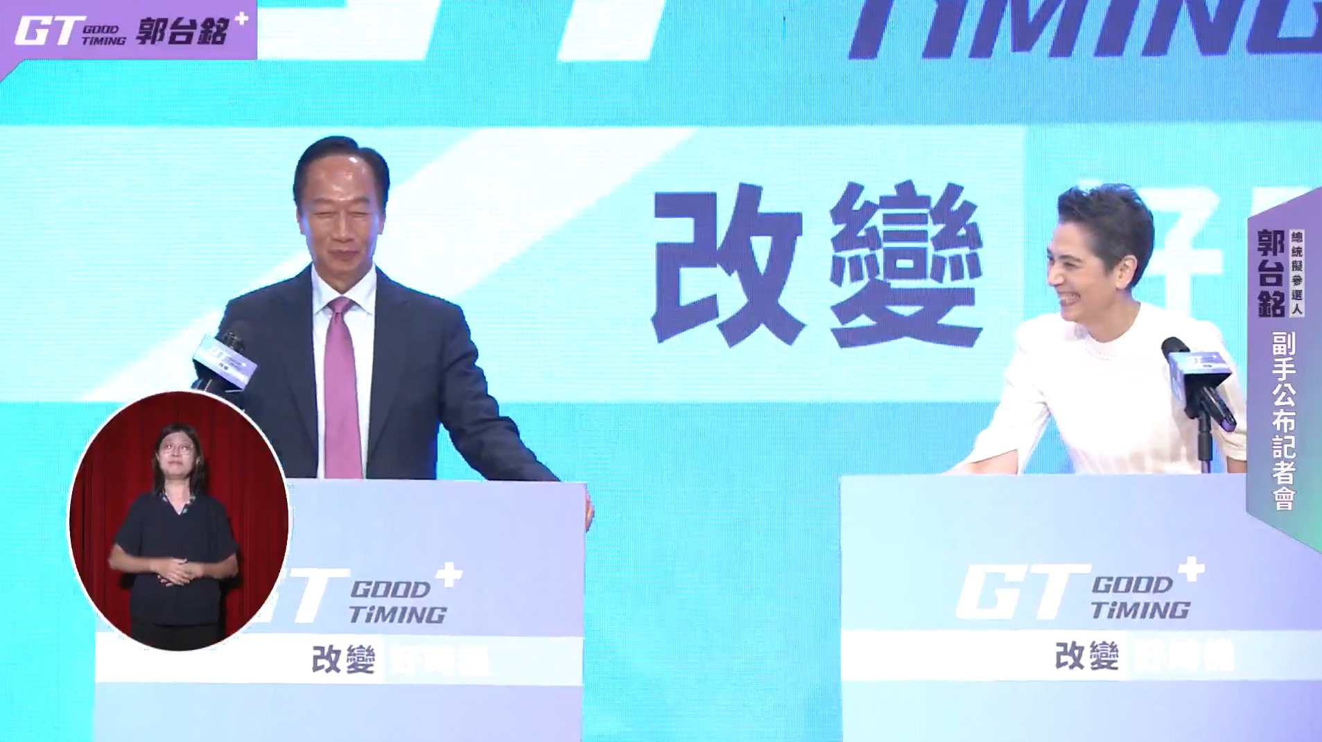 鴻海集團創辦人郭台銘自從宣布獨立參選之後,副手人選直到今日(14)上午才公布,是資深藝人賴佩霞。郭台銘並表示,賴佩霞是自己唯一正式邀請與談過的人。