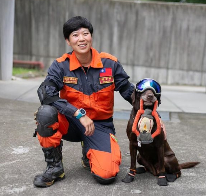 ▲開球嘉賓領犬員羅浩芳。(照片來源:新北市政府消防局特搜大隊搜救犬隊)
