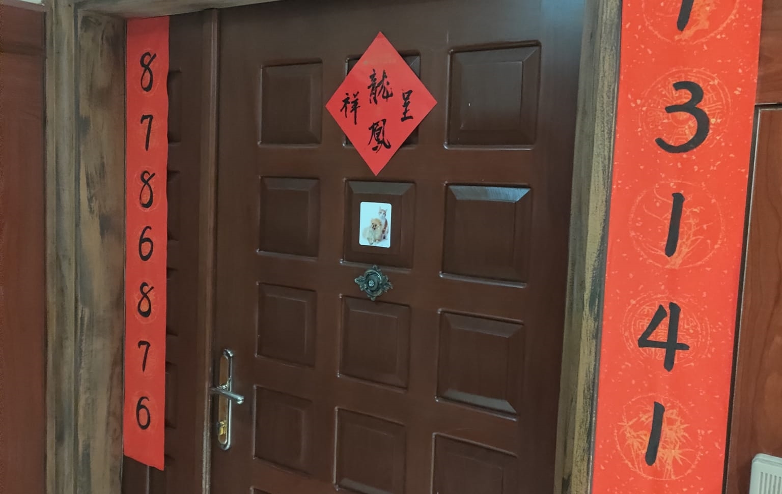 原PO在「路上觀察學院」發出這張照片,只見大門兩側的春聯上分別寫著「1314159」以及「8786876」,原PO表示不懂這是什麼意思,所以特地PO上網來問問大家。