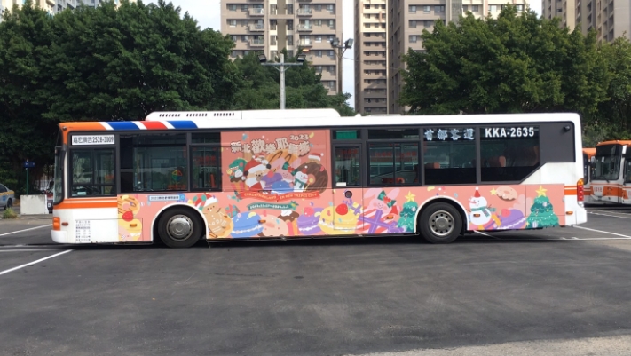 交通局運輸管理科科長林詩欽表示,這次為了吉祥物「桑塔熊」強勢回歸,首都客運99、三重客運藍38、指南客運947及813等行經耶誕城的縣民大道、中山路、新府路路線的5輛公車彩繪成「桑塔熊與他的好友」主題公車,融合了馬卡龍、奇幻甜點圖樣,為新北歡樂耶誕城增添亮點。