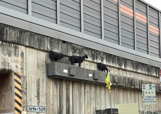 原PO在臉書社團「路上觀察學苑」PO出這張照片,他表示照片中站在牆上的三隻黑羊不是裝置藝術,而是真的咩咩,「只是今天站很整齊罷了」,照片並標示地點在高雄鳳山。