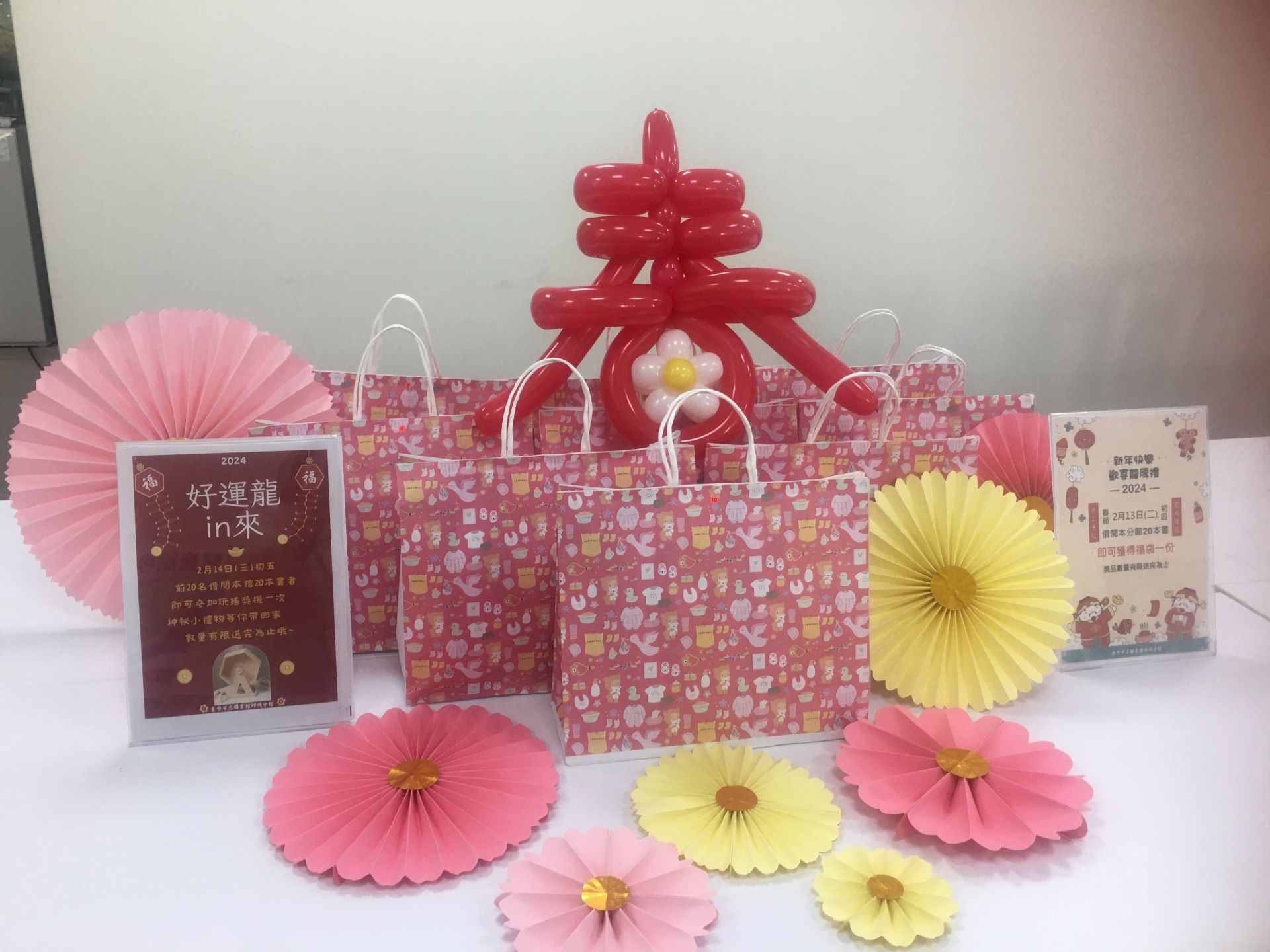 中市圖說明,各分館新春限定借書贈禮活動多樣豐富,包括新社分館「阿龍迎新春.借書玩扭蛋」可扭出濾掛咖啡包等好禮,神岡分館「歡喜龍厚禮」贈福袋,外埔分館「龍躍書香 舞新春」送龍年紀念幣,大里分館「紅龍炸春.喜閱福來」抽開運紅包等。喜歡閱讀電子書的民眾,可把握「四時讀書趣.台中嗨讀樂」電子書借閱活動,即日起至3月31日借閱HyRead電子書(包含本館館藏與計次服務)達20本以上,還可參加抽獎活動。