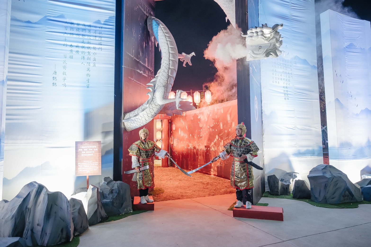建設局長陳大田表示,中台灣元宵燈會為全台最大單一場域燈會,其中「龍之異次元」燈區以「穿越時空」為主軸,穿越時空起點就在「迎賓龍門」與「龍門客棧」,搭配空間情境展演,客棧內每天有掌櫃、店小二、算命仙或俠客與民眾互動,現場仿古桌椅、酒杯等已成為拍照打卡熱區,這幾天參觀民眾也別具創意,以古裝打扮前往燈區「龍門客棧」拍照,歡迎cosplayer(coser)來「龍門客棧」與金、木、水、火四象異世界,發揮想像及裝扮魔力,將絕無僅有的情境美照分享出去,讓更多異次元迷前往「龍之異次元」魔幻世界朝聖。