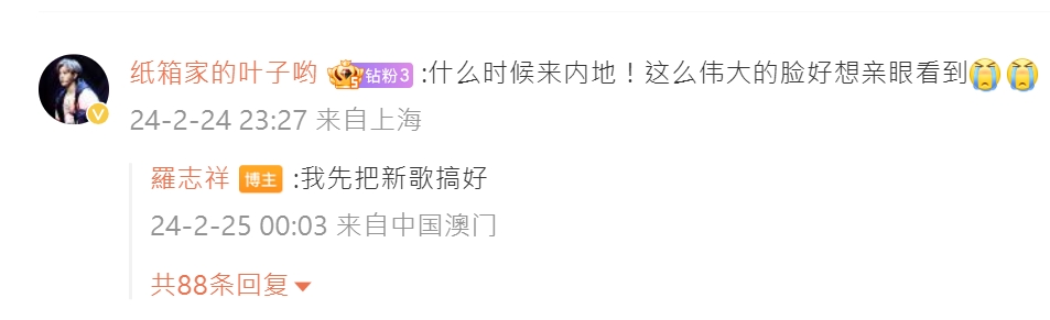 羅志祥雖然在台灣已經順利副出,但人氣不若以往,而大陸還有他的死忠粉絲,而且商機比台灣大出許多,羅志祥似乎也並不想放棄這塊大餅。日前有粉絲在微博留言問他「什麼時候來內地!這麼偉大的臉好想親眼看到」,羅志祥親自回覆「我先把新歌搞好」,等於承認了現在的工作進度,以及下一步將再次西進大陸撈金的計畫。